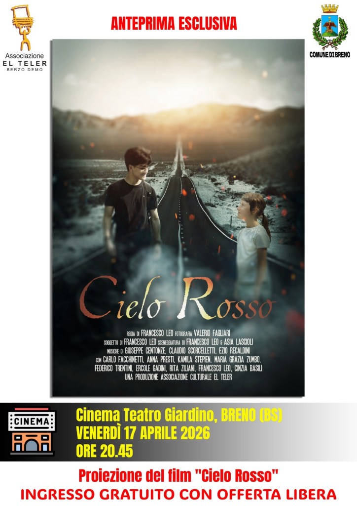 Con grande orgoglio e soddisfazione, Venerdì 17 aprile, alle ore 20.45, presenterò presso il Cinema Teatro Giardino di Breno (BS) il mio nuovo film prodotto dall’Associazione Culturale El Teler!